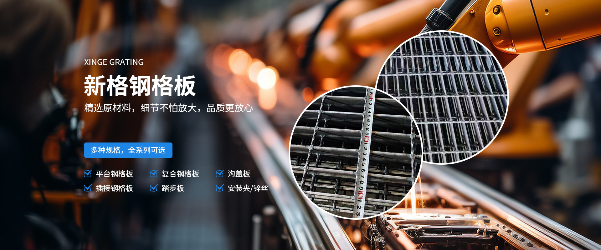 河南新格重工有限公司成立于2007年,占地36000余平方米,是河南省專注于鋼格板設計、制造、銷售的加工制造企業。公司一貫秉承“打造全國鋼格板基地”的企業理念,在“創新、務實、奉獻”的企業精神指引下,逐漸成長為一家具有現代化管理理念、優良的企業文化及靈活的經營機制的創新型加工制造企業。  公司采用目前世界上前衛的制造技術,由計算機控制的鋼格板壓阻焊機制造,機械手自動將橫桿橫放在均勻排列的扁鋼上,通過強大的電焊功率和液壓力將橫桿壓焊入扁鋼內,從而得到焊點固定、穩定性高、強度大的高質量鋼格板。公司擁有成熟的CAD設計、制造技術以及優良的工程設施經驗,獨立自主的進出口貿易資質,通過ISO9001資質體系認證。所生產的鋼格板系列產品從外觀質量、尺寸公差、焊接質量等方面均滿足客戶的需求。公司可按中國鋼格板YB/T4001.1-2007標準生產,也可按符合美國ANSI/NAAMM(MBG531-88)、英國BS4592-1987、澳大利亞AS1657-1985等標準進行生產。產品暢銷全國三十多個省、市、自治區,并有部分產品出口到國外,給上百家大型企業提供了堅實可靠的服務,得到了廣大用戶的一致肯定。  公司始終堅持“視品質為生命,視顧客為上帝”的經營宗旨,依托成熟的技術力量及良好的企業信譽,竭誠為廣大用戶提供高質量的產品及全方面的售前、售中、售后服務。  我們全體新格人將帶著真誠的期望,一如既往地以具有競爭力的價格、高質量的產品為工程項目提供盡善盡美的服務,并希望與用戶單位建立長久有好的合作伙伴關系!